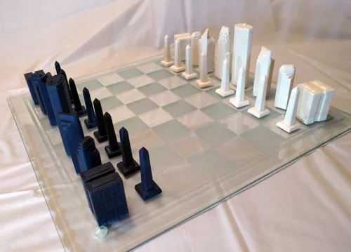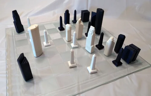 Drawing inspiration from the city I live in and cherish, I designed a unique chess set featuring skyscraper pieces. The process began with digital modeling, followed by 3D printing and hand-finishing a set of masterpieces. I then created silicone molds and produced urethane resin castings. This project marked my first experience with casting, and I am thrilled with the outcome.