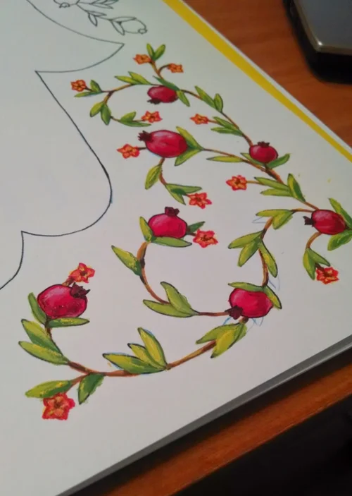 Tools Used: Pencil, Adobe Illustrator, Acrylic Paints First step was to layout the design on a sheet of paper. I drew one side, scanned it and finished the final layout digitally.